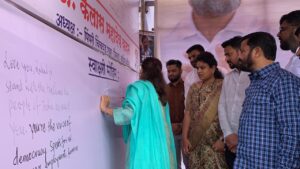 या पत्रकार परिषदेनंतर खासदार राहुल गांधी यांना पाठिंबा देण्यासाठी शहर कॉंग्रेसने सुरू केलेल्या स्वाक्षरी मोहीमेला प्रतिसाद देत आमदार प्रणिती शिंदे यांनी नाशिक फाटा येथे उपस्थित राहून स्वाक्षरी केली.