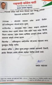प्रतिनिधी : राष्ट्रवादी काँग्रेस पार्टी, ओबीसी विभाग पिंपरी चिंचवड शहर (जिल्हा) वतीने शरातील पदाधिकारी यांची नियुक्ती शहराध्यक्ष योगेश बहल यांच्या मार्गदर्शनात माजी आमदार विलास लांडे यांच्या हस्ते तसेच कार्याध्यक्ष फजल शेख, प्रदेश ओबीसी कार्याध्यक्ष ॲड.सचिन औटे यांच्या प्रमुख उपस्थितीत नुतन कार्यकारिणी पद वाटप समारंभ मध्यवर्ती पक्ष कार्यालय, खराळवाडी,पिंपरी येथे पार पडला, यामध्ये उपाध्यक्ष, सरचिटणीस, चिटणीस, संघटन सचिव अशी पदे देण्यात आली असून, ओबीसी विभागाचे नवनियुक्त पदाधिकाऱ्यांची पक्षास मिळाली आहे. सर्व नवनियुक्त पदाधिकाऱ्यांचे पक्षश्रेष्ठींकडून अभिनंदन करण्यात आले आहे. आगामी काळात जनसंपर्क वाढवणे आणि पक्षाची ध्येय धोरणे तळागाळापर्यंत पोहोचवणे, असा निर्धार यावेळी सर्व पदाधिकारी यांच्याकडून व्यक्त करण्यात आला असल्याची माहिती ओबीसी शहर अध्यक्ष प्रशांत महाजन यांनी यावेदिली सोबत :